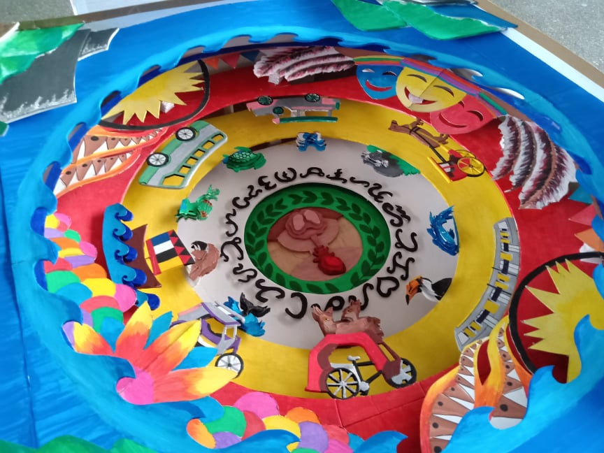 The visualization of the human heart, the heart shape, and dolls dominated the exhibit. At the center lies “In Media Res” made by a group of students from the Science, Technology, Engineering, and Mathematics strand (STEM 12-27) of the PUP Senior High School (SHS) which is made of concentric, multilayered boards representing distinct Philippine symbols. From the outermost level, it shows the country’s landscape; festivals; means of transportation; endemic fauna; and the Baybayin, Filipino native writing system.