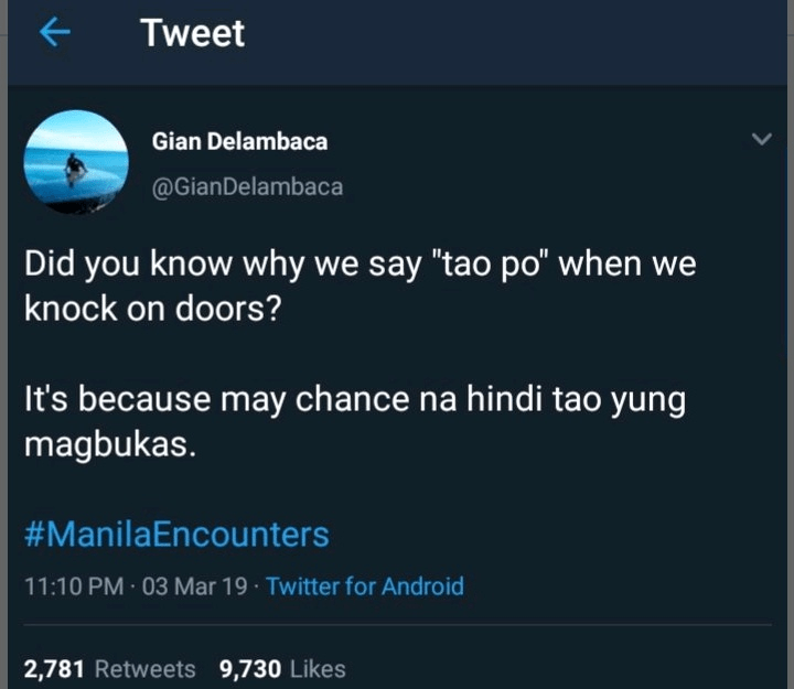 These horrors were the topic of #ManilaEncounters. Fictional short stories of different types of terrors written by Twitter users.