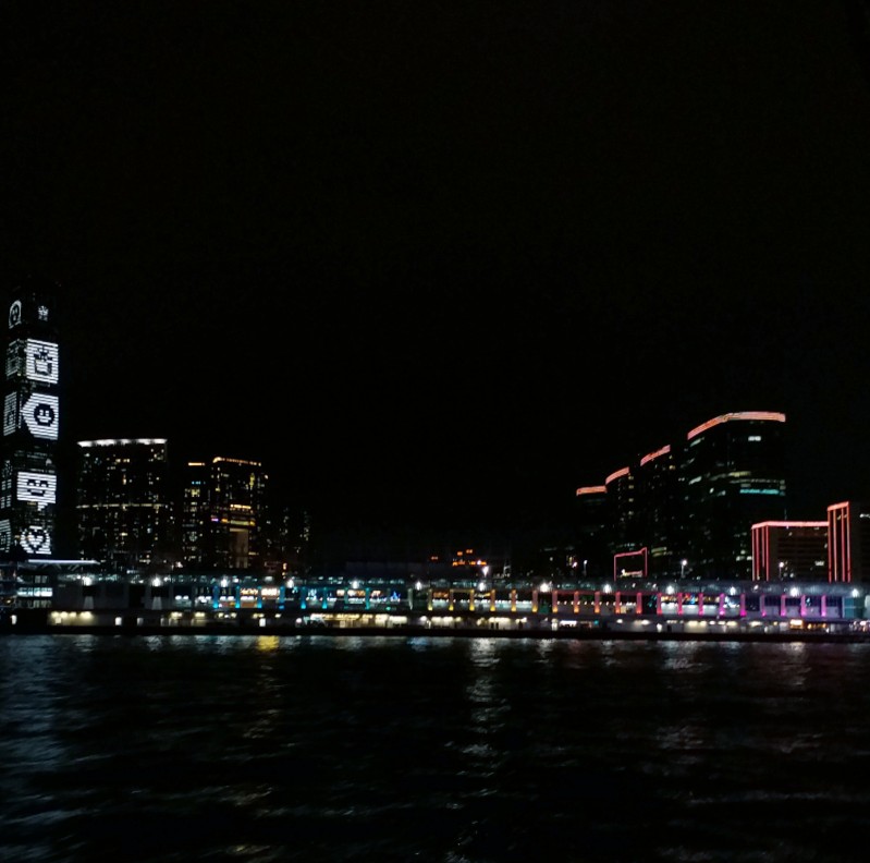 One of the most anticipated views in Hong Kong was the night sky illuminated by the lights of skyscrapers. It makes you love the night because of city lights This photo was taken at Kowloon side , a view of Hong Kong Island.